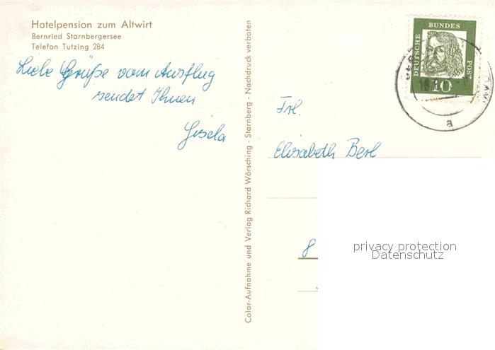72899553 alte Postkarte Bernried Starnberger See Hotelpension zum Altwirt postalisch gelaufen Erhaltung siehe scans [FriedD77] KatCode: 11110009190115