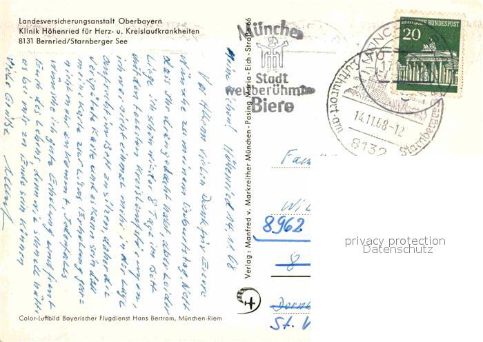 72895570 alte Postkarte Bernried Starnberger See Klinik Hoehenried der LVA Oberbayern postalisch gelaufen Erhaltung siehe scans [WerneD78] KatCode: 11110009190115