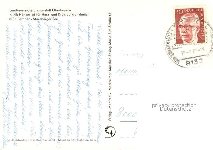 73743767 alte Postkarte Bernried Starnberger See Klinik Hoehenried Fliegeraufnahme postalisch gelaufen Erhaltung siehe scans [FriedD77] KatCode: 11110009190115