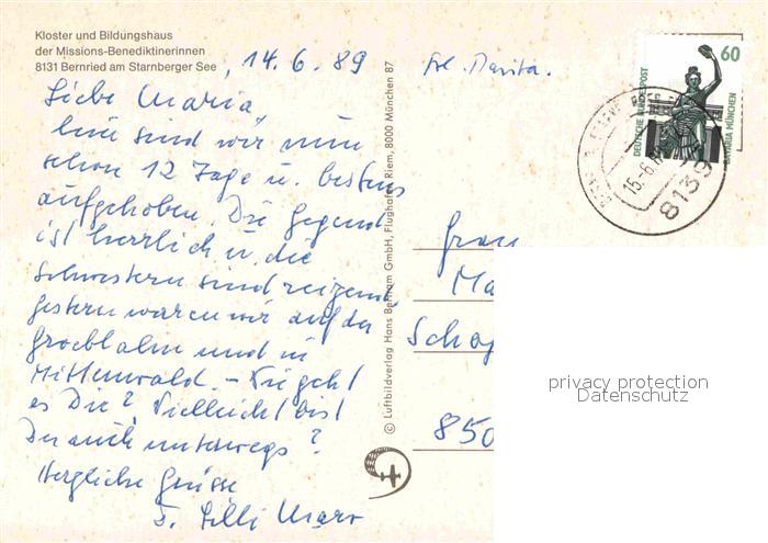 72885215 alte Postkarte Bernried Starnberger See Kloster der Missions Benediktinerinnen Fliegeraufnahme postalisch gelaufen Erhaltung siehe scans [WerneD78] KatCode: 11110009190115