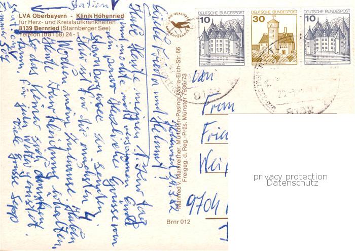 73788212 alte Postkarte Bernried Starnberger See LVA Oberbayern Klinik Hoehenried postalisch gelaufen Fliegeraufnahme Erhaltung siehe scans [FriedD77] KatCode: 11110009190115