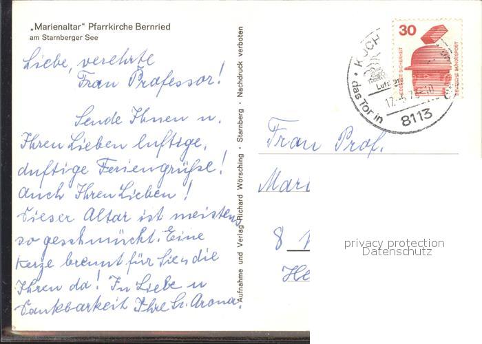 72133865 alte Postkarte Bernried Starnberger See Marienaltar Pfarrkirche postalisch gelaufen Erhaltung siehe scans KatCode: 11110009190115