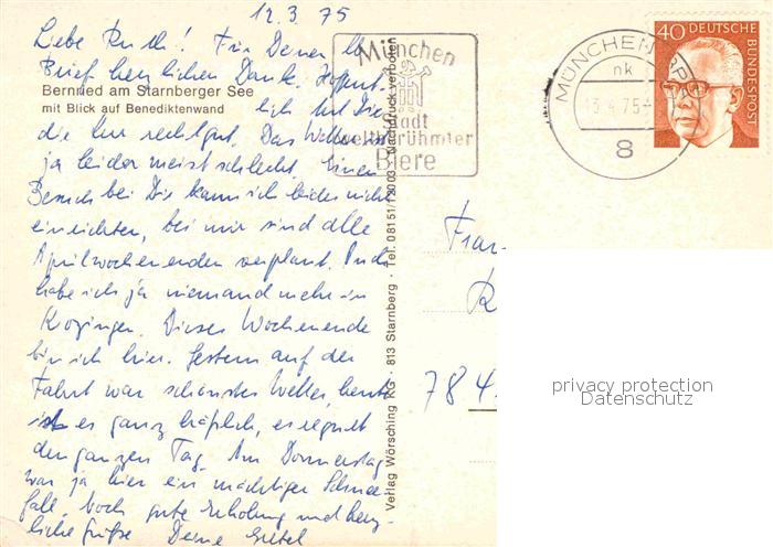 72691363 alte Postkarte Bernried Starnberger See mit Blick auf Benediktenwand Bayerische Voralpen postalisch gelaufen Erhaltung siehe scans [FriedD77] KatCode: 11110009190115