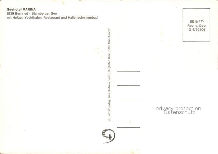 72417435 Bernried Starnberger See Seehotel Marina Fliegeraufnahme postalisch nicht gelaufen Erhaltung siehe scans KatCode: 11110009190115