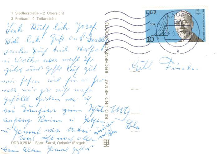 73907897 alte Postkarte Bernsbach Siedlerstrasse uebersicht Freibad Teilansicht postalisch gelaufen Erhaltung siehe scans [FriedD77] KatCode: 11110014191070