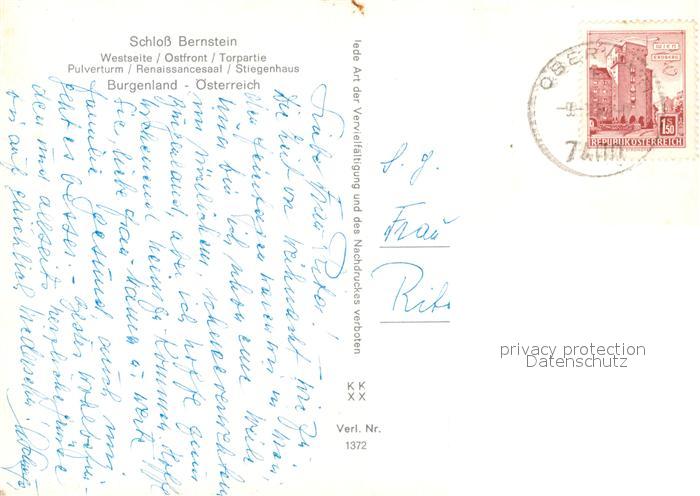 73290671 alte Postkarte Bernstein Burgenland Schloss postalisch gelaufen Erhaltung siehe scans [LiesaD40] KatCode: 11390113010902