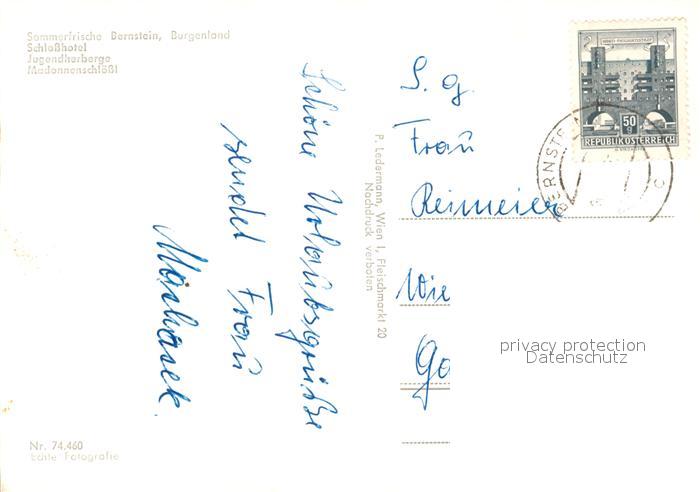 73165171 alte Postkarte Bernstein Burgenland Schlosshotel Jugendherberge Madonnenschloessl postalisch gelaufen Erhaltung siehe scans [LiesaD40] KatCode: 11390113010902
