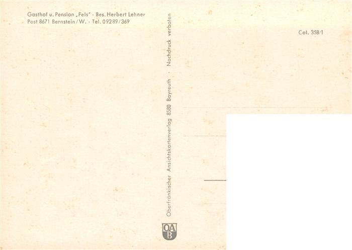 73898326 Bernstein Wald Gasthof Pension Fels postalisch nicht gelaufen Erhaltung siehe scans [WerneD78] KatCode: 11110009475169