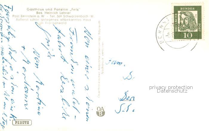 73652753 alte Postkarte Bernstein Wald Gasthof Pension Fels postalisch gelaufen Erhaltung siehe scans [FriedD77] KatCode: 11110009475169