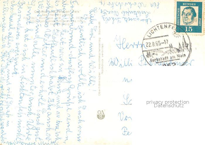 73685406 alte Postkarte Bernstein Wald Gasthof Pension Fels Panorama postalisch gelaufen Erhaltung siehe scans [WerneD78] KatCode: 11110009475169