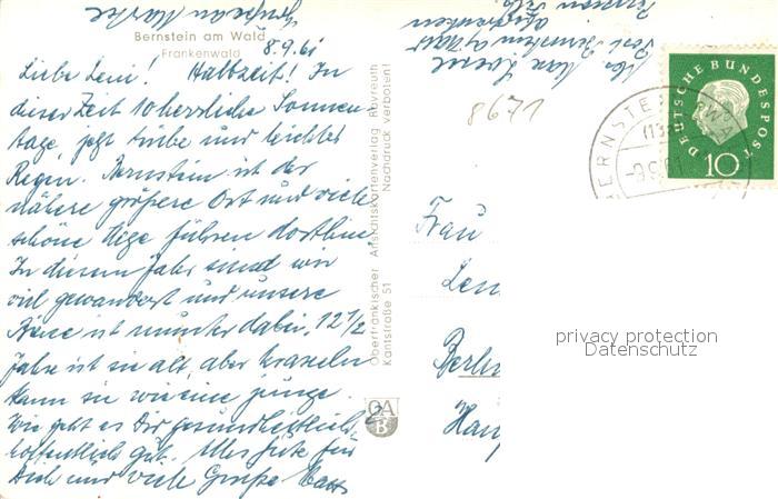 43352251 alte Postkarte Bernstein Wald Panorama postalisch gelaufen Erhaltung siehe scans [WerneD78] KatCode: 11110009475169