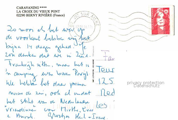 12789368 carte postale Berny-Riviere Caravaning La Croix du Vieux Pont Piscine postalisch gelaufen Erhaltung siehe scans [FriedD77] KatCode: 11170002402071