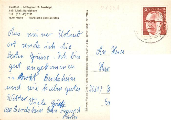 73908638 alte Postkarte Berolzheim Markt Berolzheim Panorama Gasthof Metzgerei Prosiegel Gaststube postalisch gelaufen Erhaltung siehe scans [WerneD78] KatCode: 11110009577149