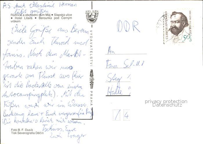 old postcard Beroun Hotel Litava Slapska ullice postalisch gelaufen Erhaltung siehe scans