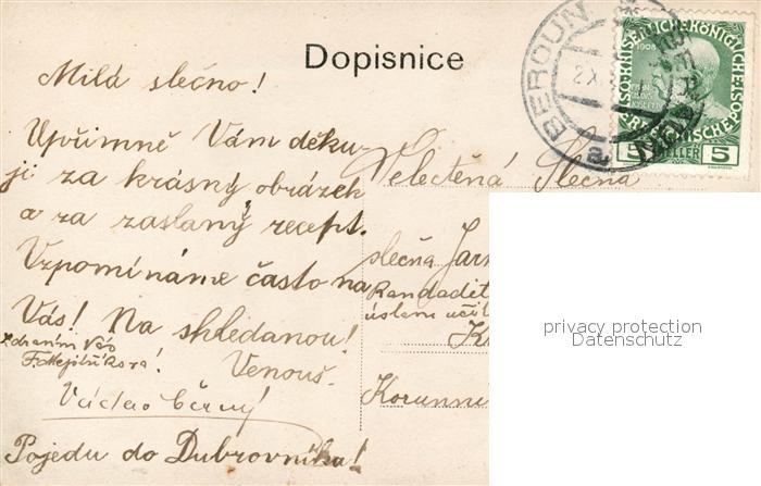 old postcard Beroun Partie am Fluss Schloss postalisch gelaufen Erhaltung siehe scans [FriedD77]