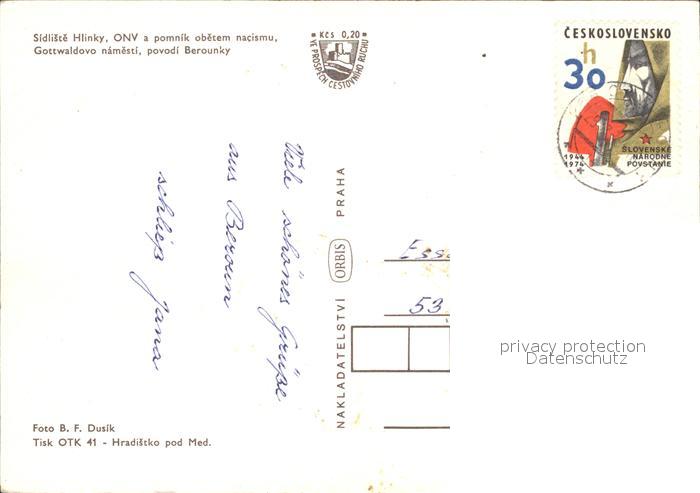 old postcard Beroun Sidlisce Hlinky Gottwaldovo namesti postalisch gelaufen Erhaltung siehe scans