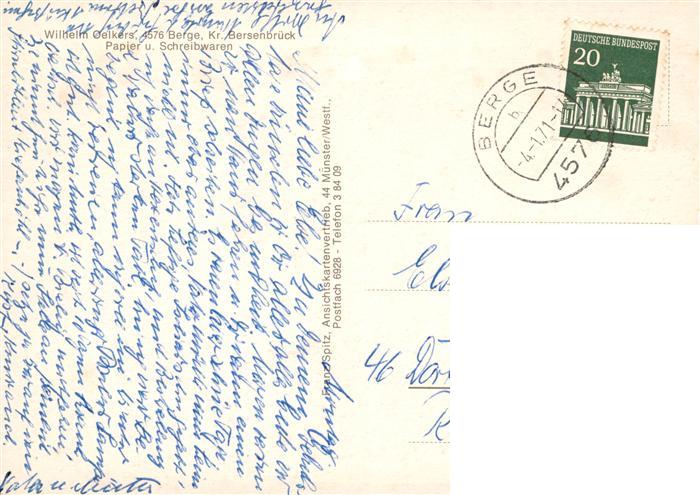 73873453 alte Postkarte Bersenbrueck Ev Kirche Hauptstrasse Kath Kirche Huenengrab Hekese Stift Boersteig postalisch gelaufen Erhaltung siehe scans [WerneD78] KatCode: 11110003459010