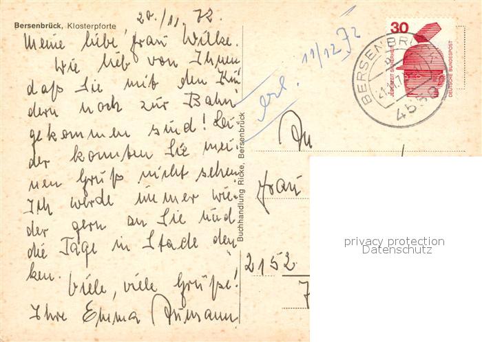 73293403 alte Postkarte Bersenbrueck Klosterpforte postalisch gelaufen Erhaltung siehe scans [KathaD81] KatCode: 11110003459010