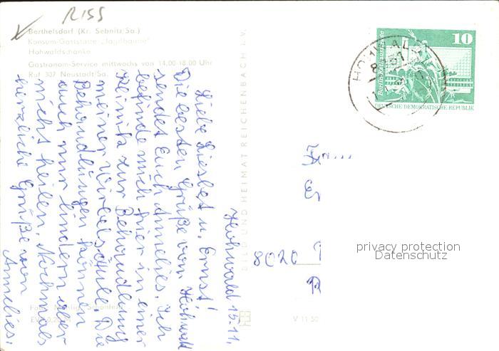 72405884 alte Postkarte Berthelsdorf Sebnitz Jagdbaude Hohwaldschaenke postalisch gelaufen Erhaltung siehe scans KatCode: 11110014287370