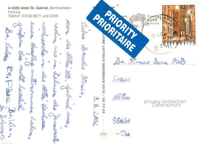 73363720 alte Postkarte Bertholdstein Fehring Abtei Sankt Gabriel Fliegeraufnahme postalisch gelaufen Erhaltung siehe scans [FriedD77] KatCode: 11390224060410