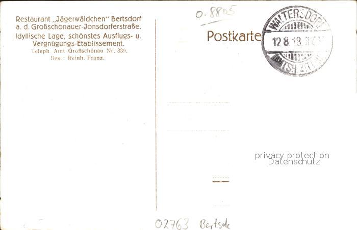 42361766 alte Postkarte Bertsdorf-Hoernitz Ausflugsort Restaurant Jaegerwaeldchen Lausche Gebirge postalisch gelaufen Erhaltung siehe scans KatCode: 11110014286040