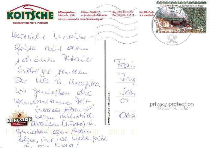 73658291 alte Postkarte Bertsdorf-Hoernitz Bergrestaurant Pension Koitsche Klingstein Bier Landschaftspanorama postalisch gelaufen Erhaltung siehe scans [FriedD77] KatCode: 11110014286040