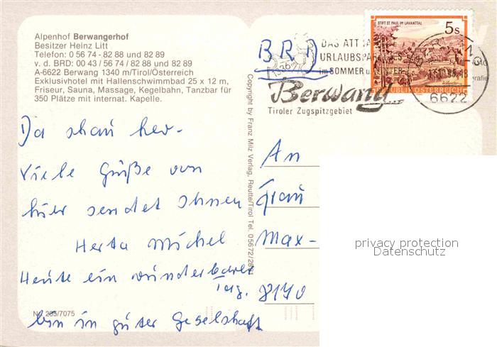 72626725 alte Postkarte Berwang Tirol Alpenhof Berwangerhof postalisch gelaufen Erhaltung siehe scans [FriedD77] KatCode: 11390331070802