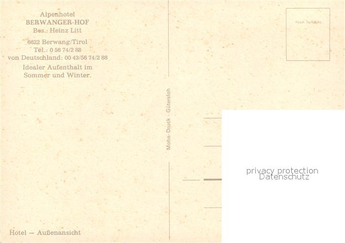 73245869 Berwang Tirol Alpenhotel Berwanger Hof postalisch nicht gelaufen Erhaltung siehe scans [FriedD77] KatCode: 11390331070802