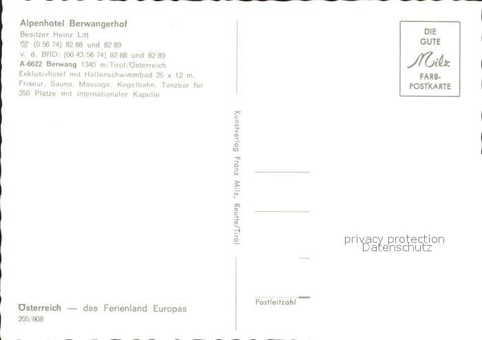 71986023 Berwang Tirol Alpenhotel Berwangerhof postalisch nicht gelaufen Erhaltung siehe scans KatCode: 11390331070802