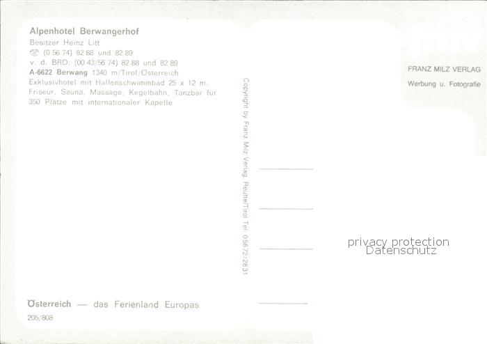 72922934 Berwang Tirol Alpenhotel Berwangerhof postalisch nicht gelaufen Erhaltung siehe scans [PaolaD17] KatCode: 11390331070802