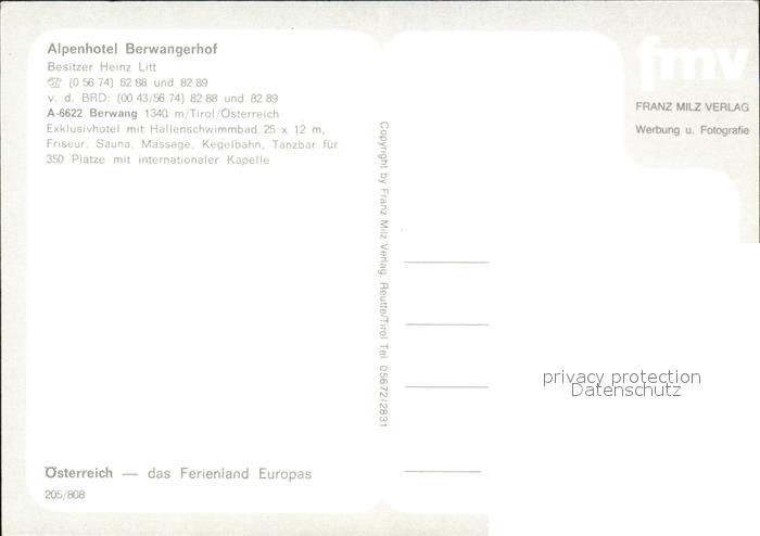 72443081 Berwang Tirol Alpenhotel Berwangerhof postalisch nicht gelaufen Erhaltung siehe scans KatCode: 11390331070802