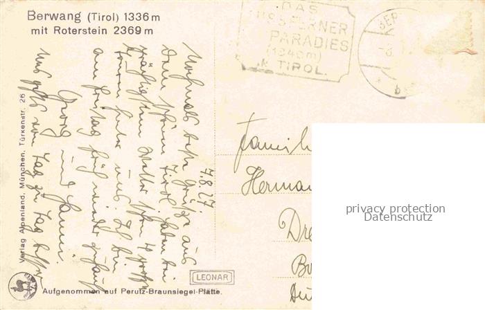 74033300 alte Postkarte Berwang Tirol AT Ortsansicht mit Kirche Blick gegen Roterstein postalisch gelaufen Erhaltung siehe scans [FriedD77] KatCode: 11390331070802