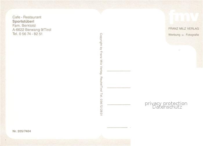12937078 Berwang Tirol Cafe Restaurant Sportstueberl postalisch nicht gelaufen Erhaltung siehe scans [AndreD76] KatCode: 11390331070802