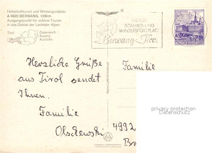 73083290 alte Postkarte Berwang Tirol Fliegeraufnahme postalisch gelaufen Erhaltung siehe scans [KathaD81] KatCode: 11390331070802