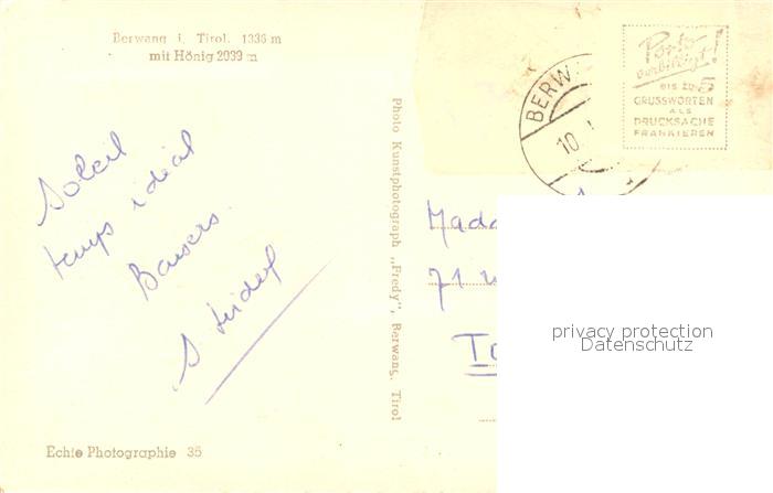 73560522 alte Postkarte Berwang Tirol mit H?nig postalisch gelaufen Erhaltung siehe scans [LiesaD40] KatCode: 11390331070802