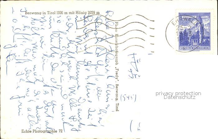72594799 alte Postkarte Berwang Tirol mit Hoenig postalisch gelaufen Erhaltung siehe scans [WerneD78] KatCode: 11390331070802