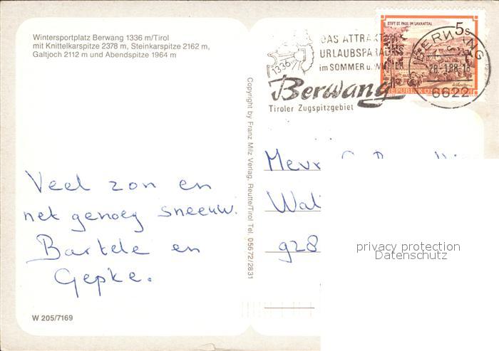 72470320 alte Postkarte Berwang Tirol mit Knittelkarspitze Galtjoch Abendspitze postalisch gelaufen Erhaltung siehe scans KatCode: 11390331070802