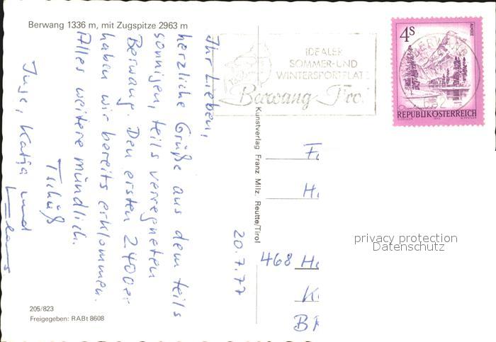 72479839 alte Postkarte Berwang Tirol mit Zugspitze Fliegeraufnahme postalisch gelaufen Erhaltung siehe scans KatCode: 11390331070802