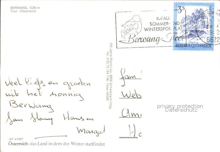 72092990 alte Postkarte Berwang Tirol Panorama postalisch gelaufen Erhaltung siehe scans KatCode: 11390331070802