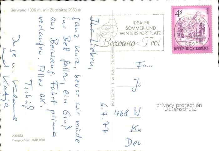 72499581 alte Postkarte Berwang Tirol Panorama mit Zugspitze postalisch gelaufen Erhaltung siehe scans KatCode: 11390331070802