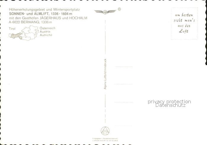 72447141 Berwang Tirol Sonnenlift Almlift Gasthof Jaegerhaus Hochalm Fliegeraufnahme postalisch nicht gelaufen Erhaltung siehe scans KatCode: 11390331070802