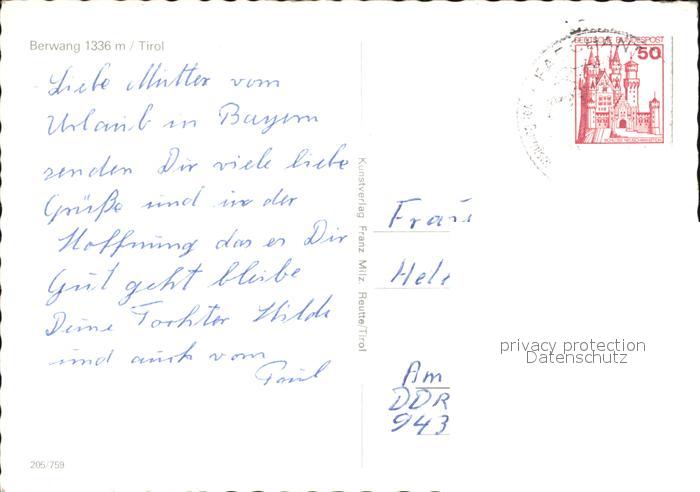 72543306 alte Postkarte Berwang Tirol Teilansicht Kirche postalisch gelaufen Erhaltung siehe scans [WerneD78 kv016box] KatCode: 11390331070802