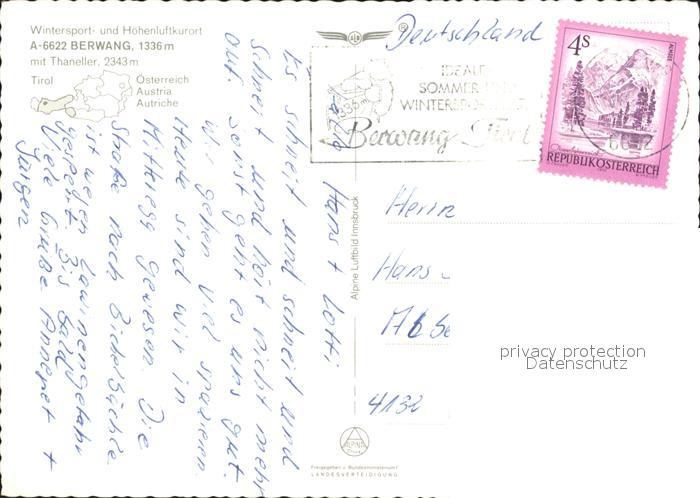 72303214 alte Postkarte Berwang Tirol Thaneller Fliegeraufnahme postalisch gelaufen Erhaltung siehe scans KatCode: 11390331070802