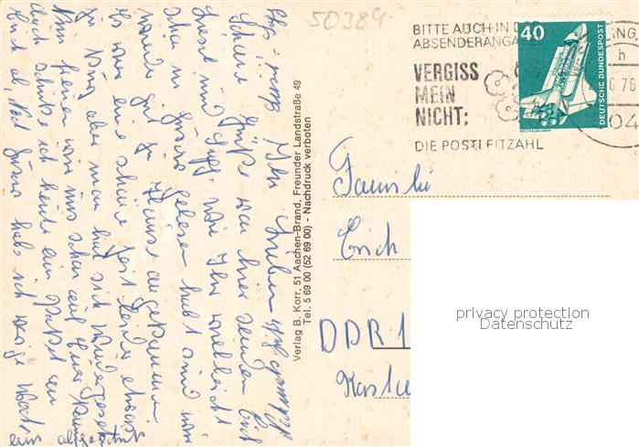 73864764 alte Postkarte Berzdorf Wesseling Teilansichten Kirche Schule Park Ruhebank postalisch gelaufen Erhaltung siehe scans [FriedD77] KatCode: 11110005362040
