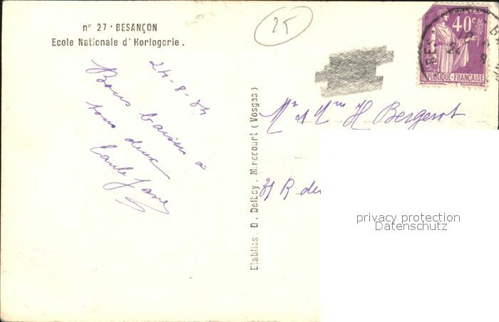 12556023 carte postale Besancon Doubs Ecole Nationale d`Horlogorie postalisch gelaufen Erhaltung siehe scans [AndreD76] KatCode: 11170025125056