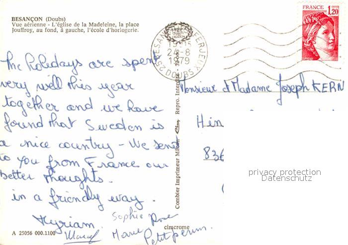 12785175 carte postale Besancon Doubs Eglise de la Madeleine Place Jouffroy Ecole d Horlogerie vue aerienne postalisch gelaufen Erhaltung siehe scans [FriedD77] KatCode: 11170025125056