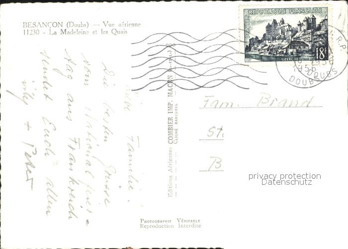 12353896 carte postale Besancon Doubs Vue aerienne La Madeleine et les Quais postalisch gelaufen Erhaltung siehe scans KatCode: 11170025125056