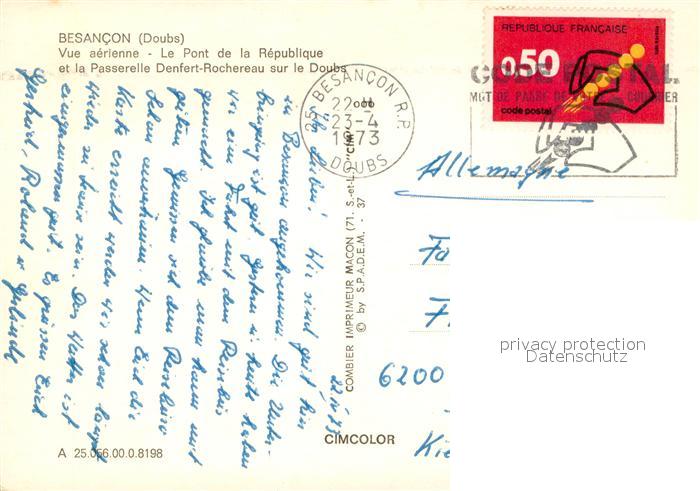 13747135 Besancon Doubs Vue aerienne Le Pont de la Republique et la Passerelle Denfert Rochereau sur le Doubs postalisch gelaufen Erhaltung siehe scans [WerneD78] carte postale Wern Katcode 11170025125056