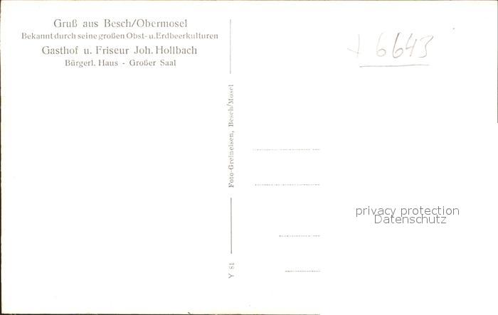 41815349 Besch Perl Totalansicht Gasthof Hollbach postalisch nicht gelaufen Erhaltung siehe scans Alte Ansichtskarte Postkarte hz_F Katcode 11110010042115