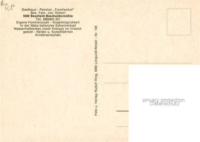 73845223 Bescheid Hermeskeil Gasthaus Pension Forellenhof Fliegeraufnahme postalisch nicht gelaufen Erhaltung siehe scans [WerneD78] KatCode: 11110007235005